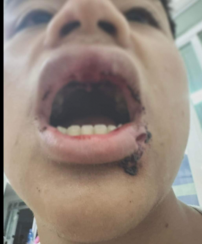 Vùng mặt của nam sinh bị tấn công khiến T. gãy 4 răng ở hàm trên, phần môi bị ảnh hưởng nghiêm trọng.