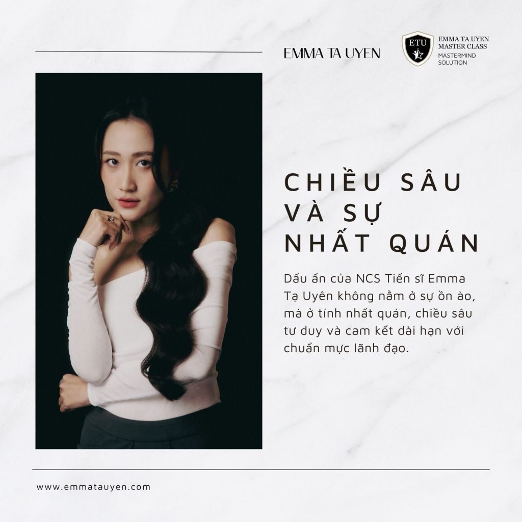 Hành trình của cô không được định nghĩa bằng sự ồn ào, mà bằng tính nhất quán. Không phải bằng những tuyên ngôn lớn, mà bằng chiều sâu tư duy và sự kiên định trong cách hiện diện. Và có lẽ, chính sự bền bỉ ấy mới là dấu ấn rõ nét nhất trong con đường mà Emma Tạ Uyên lựa chọn: đồng hành cùng những người lãnh đạo trên hành trình hiểu mình sâu hơn, định vị mình rõ hơn và kiến tạo giá trị một cách có trách nhiệm.