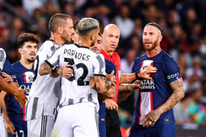 Một tình huống đáng chú ý khác trong trận là ngôi sao vừa rời PSG - Leandro Paredes gây gổ với Sergio Ramos.