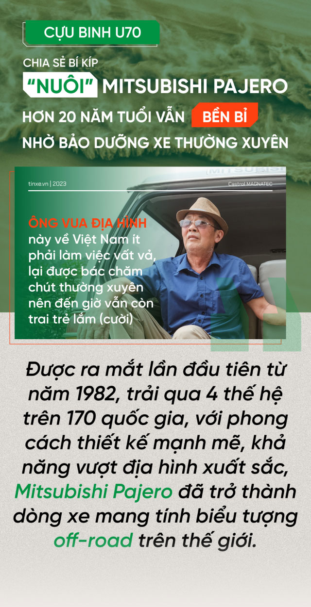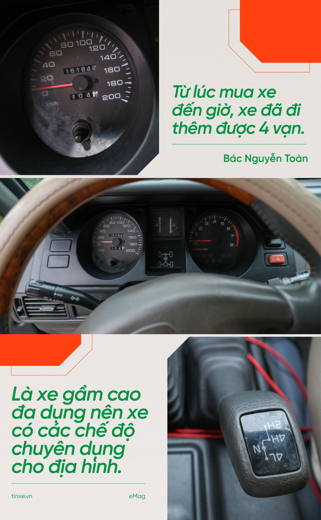 Cho đến năm 2012, gia đình bác muốn mua một chiếc xe gầm cao đa dụng phục vụ sở thích thỉnh thoảng off-road của bản thân cũng như phục vụ cho cả gia đình. Bác đã ngắm sẵn một chiếc Ford Escape rồi, nhưng khi vừa nhìn thấy chiếc Pajero này thì sẵn sàng bỏ cọc để lấy luôn với mức giá chưa tới 300 triệu. Thời điểm đó, chiếc Pajero này đã đi được 10 năm với 120.000km. Tính từ thời điểm đó cho đến bây giờ, tổng cộng 21 năm sử dụng nhưng chiếc xe vẫn quá bền bỉ, không có vấn đề gì lớn nên bác vẫn gắn bó đến giờ, cũng không có ý định bán.