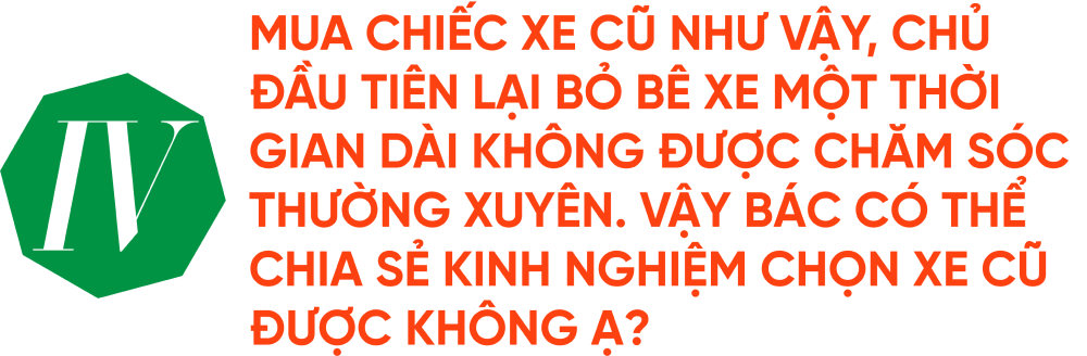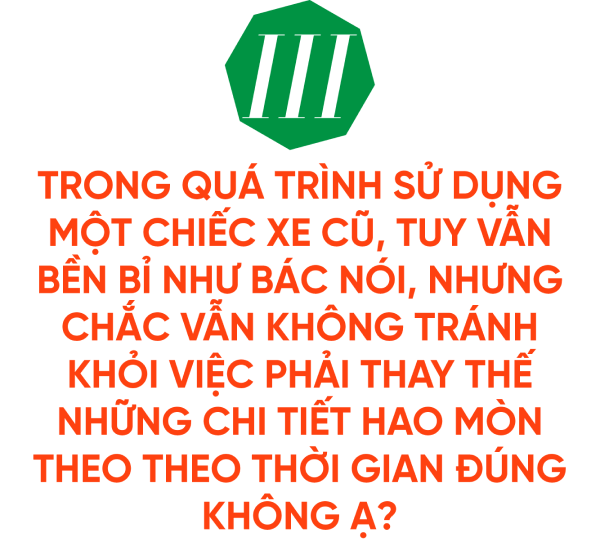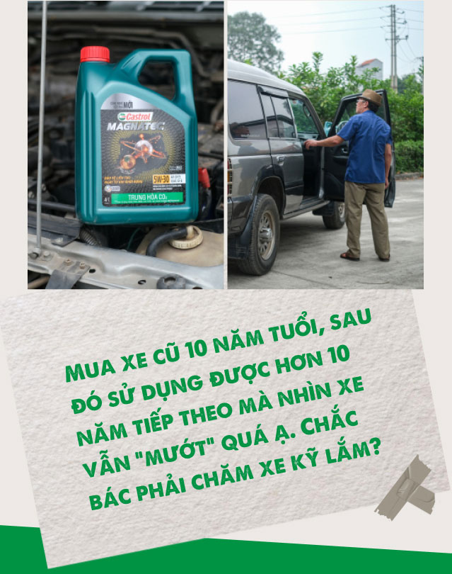 Ở nhà bác để xe nơi sạch sẽ, có mái che hạn chế mưa nắng ảnh hưởng đến các chi tiết bên ngoài. Quan trọng nhất là phải bảo dưỡng, kiểm tra xe thường xuyên dù có sử dụng xe ít. Bác vẫn đều đặn thay dầu động cơ mỗi 5000km đấy nên máy nổ vẫn êm, vận hành mượt mà sau bao năm. Mà nhớ phải thay loại tốt và phù hợp nhé, không nên quá tiết kiệm chi phí mà lười thay dầu hay chọn loại dầu không đảm bảo. Động cơ là trái tim của chiếc xe nên mình phải chăm chút cẩn thận.