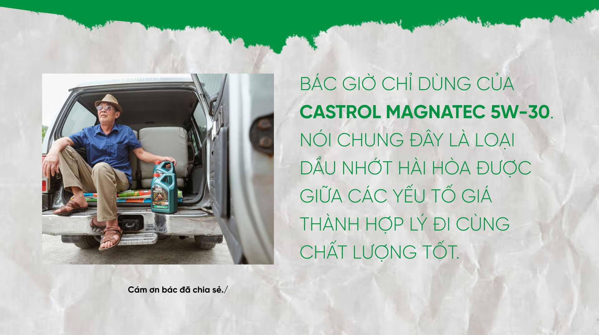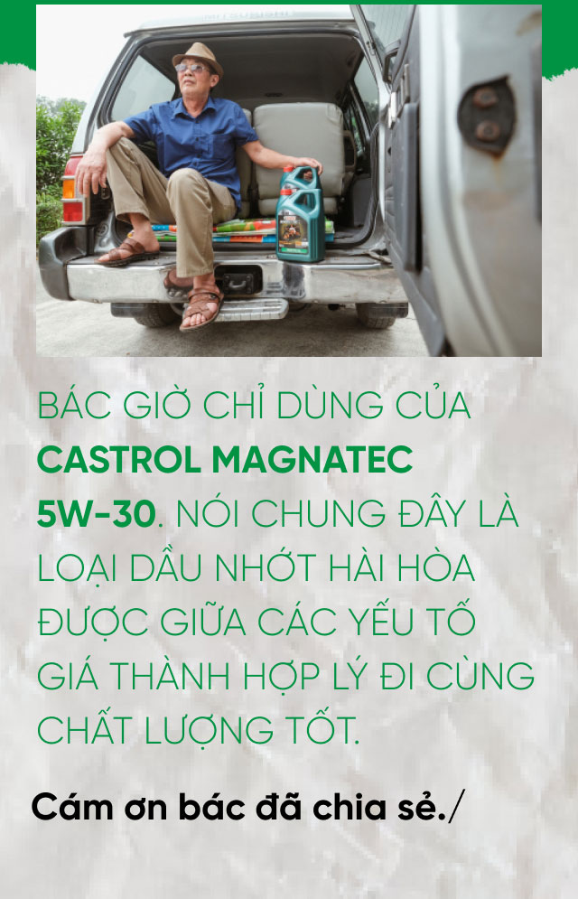 Cũng nên để ý mỗi lần thay dầu nhớt, do quá trình cháy nhiên liệu phát sinh nhiều muội, cặn bẩn nên dầu động cơ có thêm các phụ gia tẩy rửa để làm sạch bề mặt các bộ phận. Lúc thay dầu nếu thấy có màu đen thì chứng tỏ dầu đã làm việc tốt và cần phải thay thường xuyên. 10 năm sử dụng, bác cũng thử qua vài loại dầu trên thị trường rồi, giờ chỉ dùng của Castrol MAGNATEC 5W-30. Nói chung đây là loại dầu nhớt hài hòa được giữa các yếu tố giá thành hợp lý đi cùng chất lượng tốt. Mỗi lần thay dầu cho cái động cơ V6 này cũng tốn khoảng 6-7l nhớt, nên Castrol MAGNATEC 5W-30 rất phù hợp. Bác cũng đã thay thêm dầu hộp số, còn cả dầu côn xe như lần đi Hòa Bình về nữa, mà ban đầu không để ý đến nó lắm.