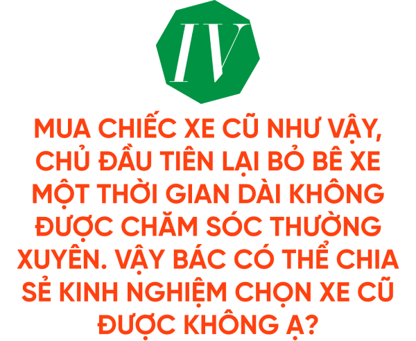 Từ lúc mua về được 10 năm mà xe mới chạy thêm được 4 vạn km thôi. Từ lúc mua về bác cũng gần đến tuổi nghỉ hưu, nên nó cũng ít phải phục vụ công việc, chỉ trừ những chuyến đi xa hay chở cả gia đình thôi, bác thích tự lái đưa vợ đi chơi. Các con cái bận rộn, thì vợ chồng già tự tìm niềm vui vậy.