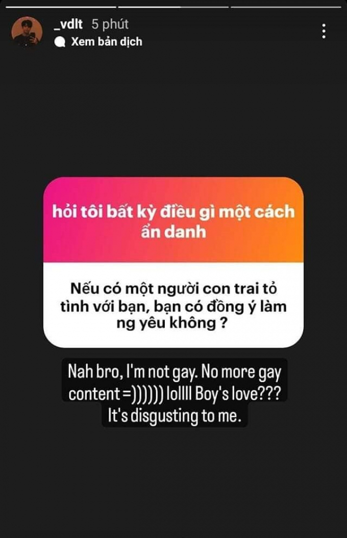 Phát ngôn gây tranh cãi của Vĩnh Đam trên story Instagram.