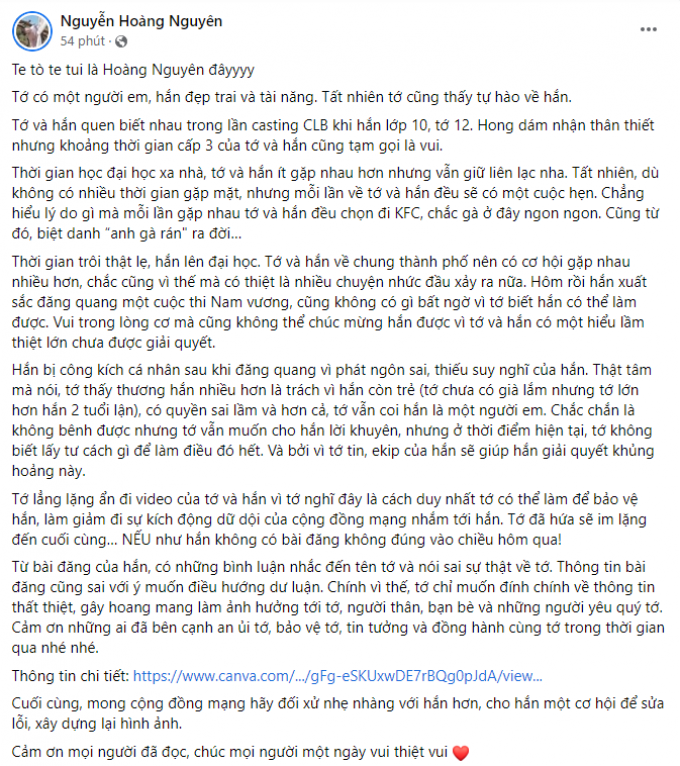 Chia sẻ của Hoàng Nguyên nhằm đính chính những thông tin sai lệch được lan truyền của cộng đồng mạng.