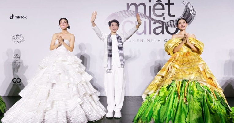 Với 7 thiết kế đại diện cho 20 mẫu thiết kế ấn tượng của BST được trình diễn bởi dàn hoa hậu, siêu mẫu hàng đầu Việt Nam, Nguyễn Minh Công như mang đến một câu chuyện văn hóa được kể bằng thời trang giao thoa nét đẹp dân gian và ký ức quê hương.