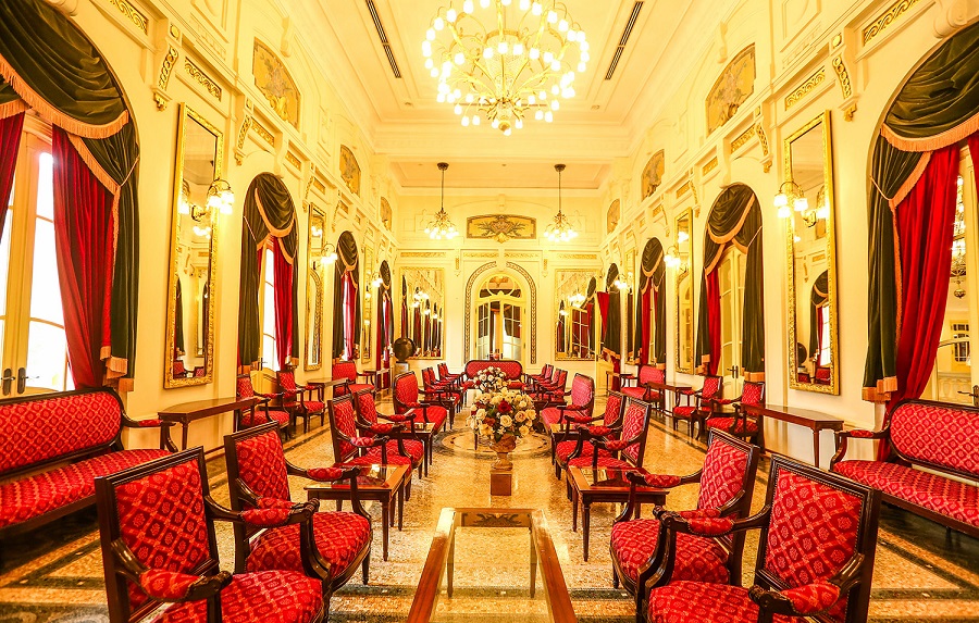 Sảnh chính thể hiện sự lộng lẫy, hào nhoáng khi được lát đá trắng nhập khẩu từ Italia, trải thảm đỏ ở lối đi giữa tạo cảm giác sang trọng quý phái như cung điện hoàng gia Anh.