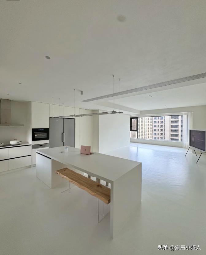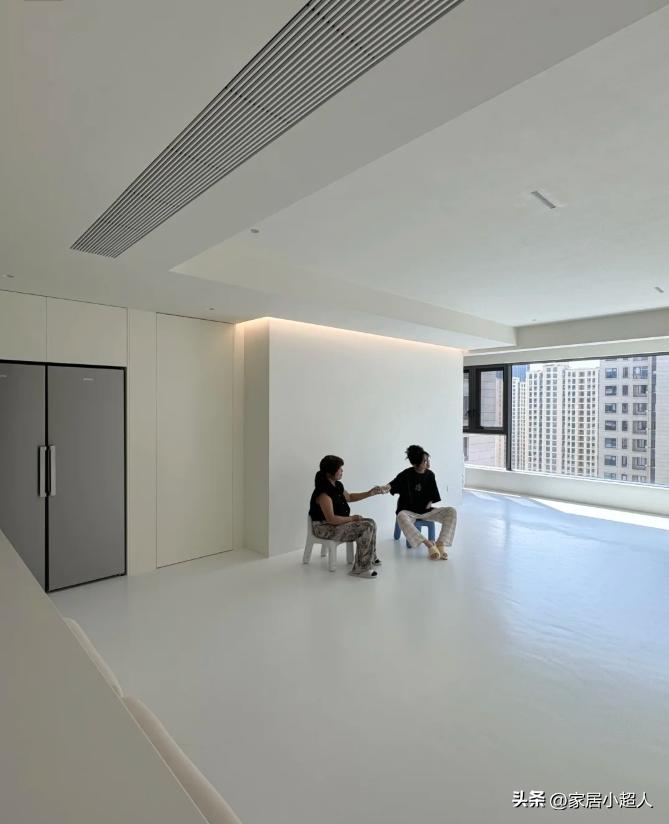 Chủ nhân của căn nhà trong câu chuyện cho biết vợ anh đã lựa chọn phong cách tối giản đến mức phòng khách gần như trống hoàn toàn. Không sofa, không bàn trà, không tivi – chỉ là một không gian trắng, rộng và thoáng.