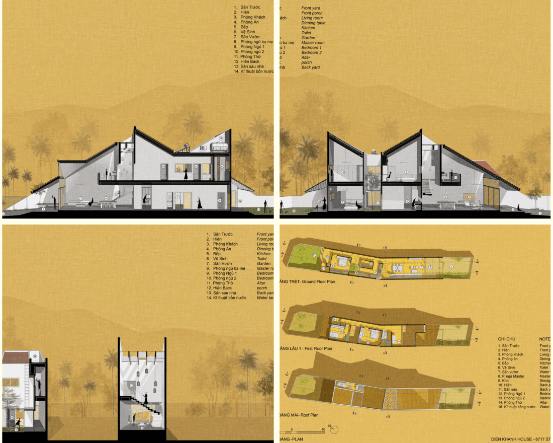 Bản vẽ mặt cắt Nhà ống hiện đại mang nét truyền thống trong từng không gian tại Khánh Hòa.