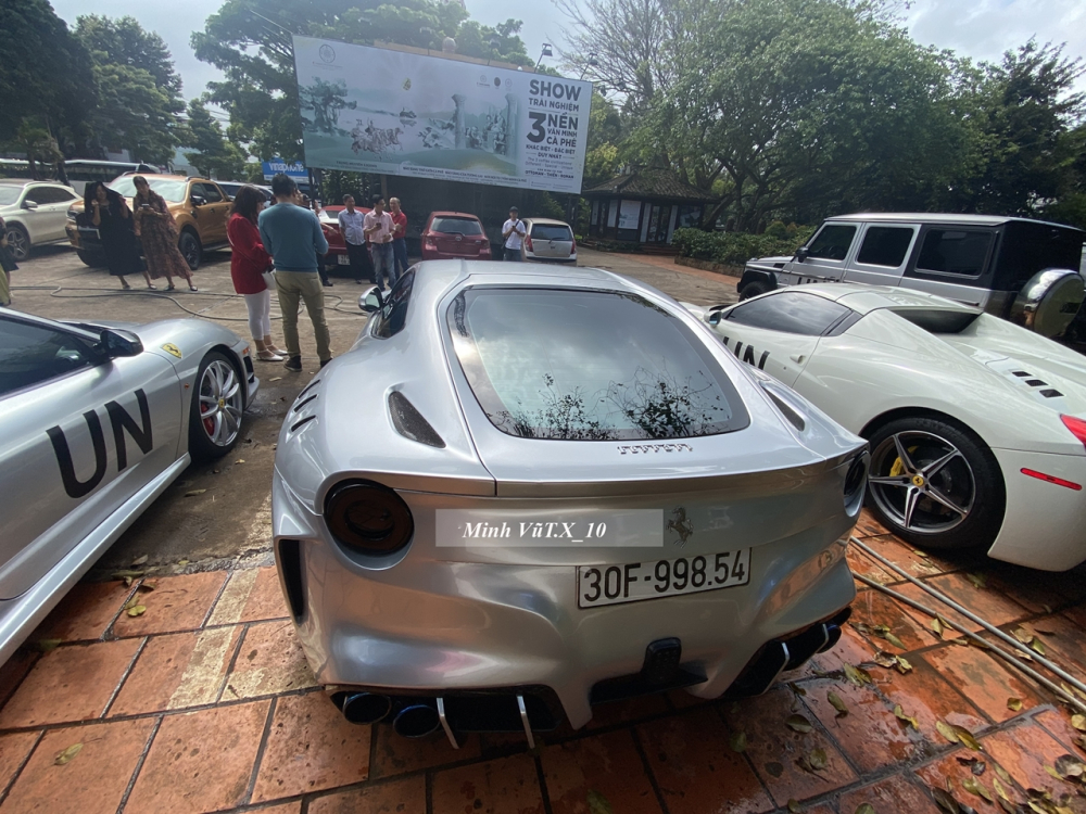 Không chỉ 1 mà có đến 2 chiếc siêu xe Ferrari F12 Berlinetta được mang ra trưng bày, 2 xe đều mang màu đỏ Rosso Corsa nhưng nay được dán màu khác. Xe "zin" được dán màu đen còn chiếc Ferrari F12 Berlinetta Duke Dynamics độc nhất Việt Nam lại mang màu bạc.
