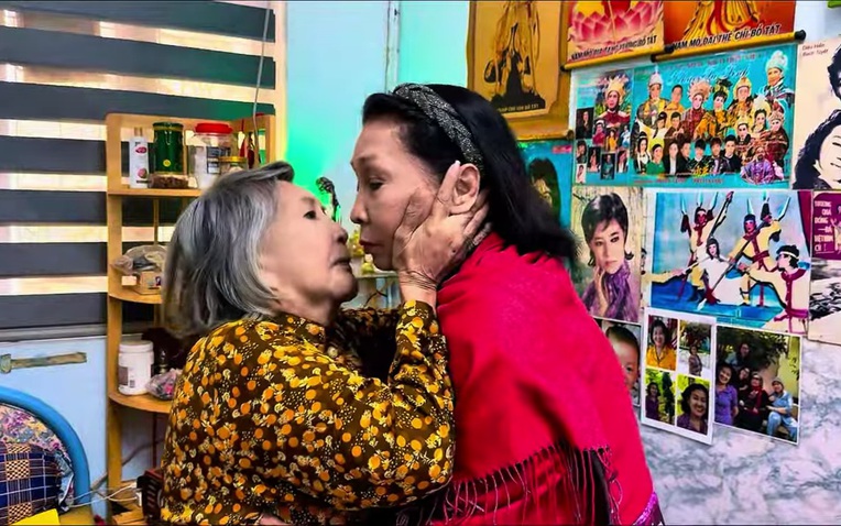 Nói rồi, NSND Bạch Tuyết đưa quần áo, váy đầm ra cho nghệ sĩ Diệu Hiền thử, bộ nào cũng đẹp, mới, lấp lánh nhiều màu sắc, có cả áo dài. Nghệ sĩ Diệu Hiền tỏ ra hào hứng và thích thú khi được diện đồ mới.