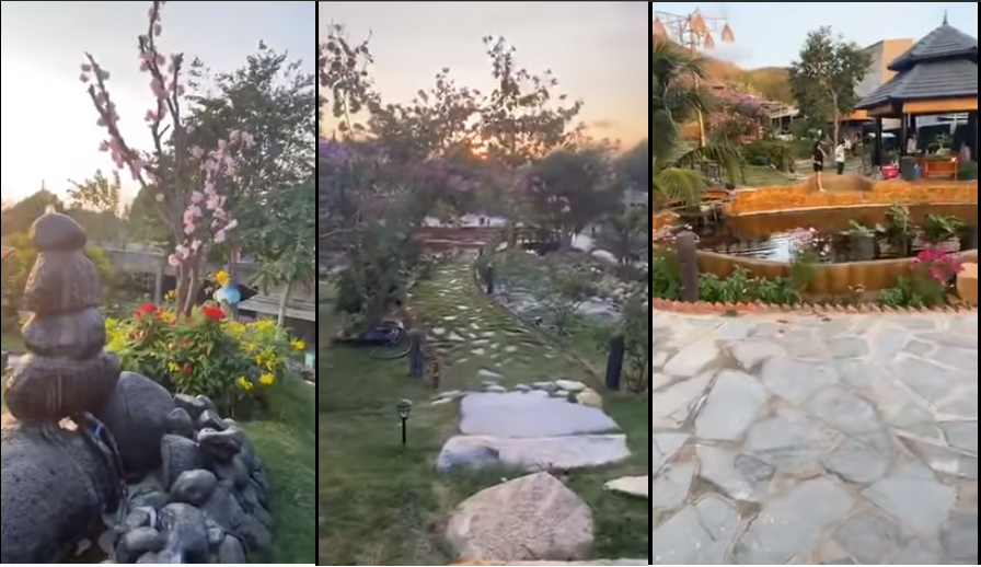 Phía sau nhà là khu vườn nhỏ xinh với hoa lá và những góc nghỉ ngơi riêng tư, nơi các thành viên có thể thư giãn, hít thở không khí trong lành. Tổng thể biệt thự vừa tiện nghi, sang trọng, vừa gần gũi thiên nhiên, phản ánh gu sống tinh tế của nữ nghệ sĩ.