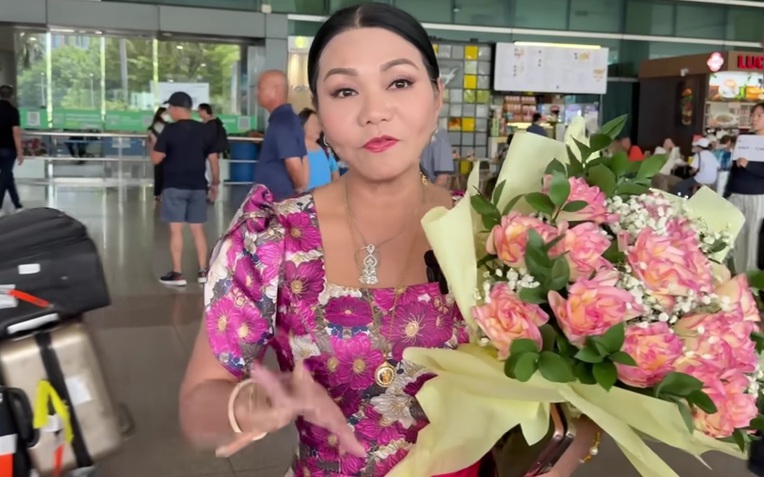 Vừa tới sân bay, nữ nghệ sĩ được đông đảo khán giả, fan tới đón và tặng hoa chúc mừng, xin chụp hình chung. Điều đó cho thấy cô vẫn được khán giả yêu mến dù định cư nước ngoài đã lâu.