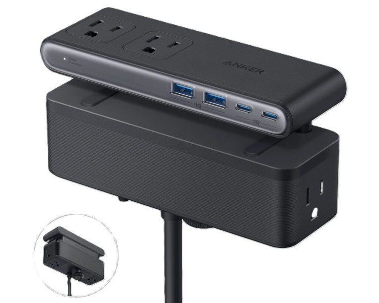 Anker vừa giới thiệu một sản phẩm mới mang tên Nano Power Strip (10-in-1, 70W, Clamp), một giải pháp độc đáo nhằm giải quyết vấn đề dây cáp lộn xộn trên bàn làm việc. Thiết bị này được thiết kế để gắn trực tiếp vào cạnh bàn, sử dụng cơ chế kẹp với hai phần ôm lấy mặt trên và dưới của bàn, sau đó siết chặt bằng một núm xoay. Đây là một ý tưởng đơn giản nhưng hiệu quả, giúp người dùng dễ dàng quản lý các thiết bị điện tử.