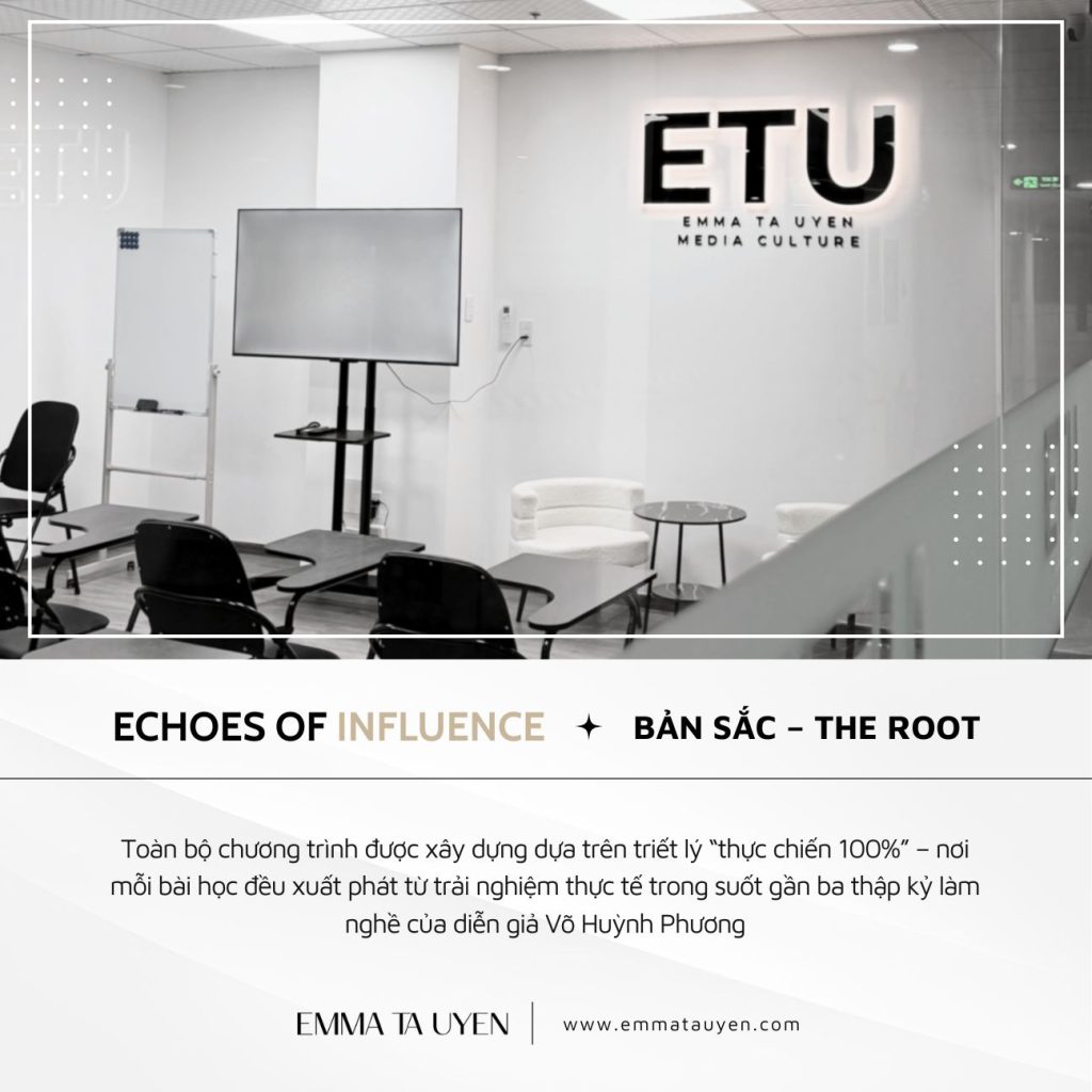 Workshop "Bản Sắc – The Root" là điểm mở đầu cho dự án Echoes of Influence – một hành trình được khởi xướng bởi NCS Tiến sĩ Emma Tạ Uyên, đồng thời được phát triển và vận hành bởi công ty ETUMC.