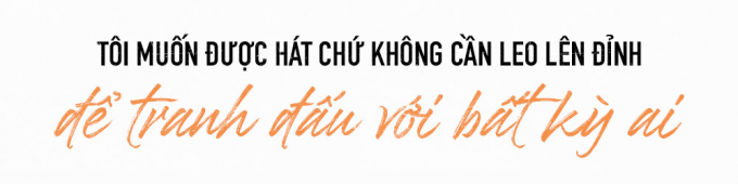 Mục đích của tôi lần này là quay lại sân khấu để hát, chứ không phải là leo lên đỉnh để đấu đá với người này người kia. Tôi mong muốn được khán giả đón nhận, để đi hát và dùng tiền đó để thực hiện những điều đã hứa với Tổ. Với tôi bây giờ, tâm thế làm nghề rất thoải mái và tôi sẽ luôn làm hết sức.