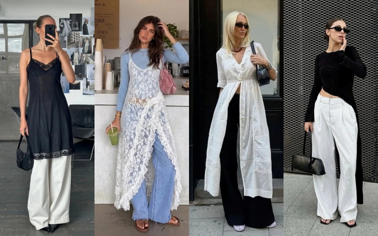 Chỉ cần một chiếc váy đen ôm nhẹ mặc ngoài quần jeans, hoặc váy trắng xẻ tà phối cùng quần ống rộng, bạn đã có ngay một outfit vừa cá tính vừa thanh lịch.