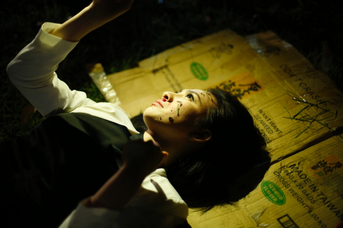 Phương Anh Đào nằm "sải lải" trên mặt đất