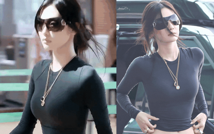 Ningning xuất hiện với chiếc áo thun tay dài ôm sát đến từ thương hiệu Skims, chất liệu mềm mịn giúp tôn trọn đường cong cơ thể. Nữ idol khéo léo phối cùng quần ống suông cạp thấp, để lộ nhẹ lớp ren nội y phía trên – một chi tiết nhỏ nhưng tạo nên điểm nhấn quyến rũ, tinh tế và đầy tò mò. Hoàn thiện tổng thể, cô lựa chọn kính mát bản to, dây chuyền vàng đeo layer và nhẫn to bản, mang đến vẻ ngoài sang chảnh, hiện đại.