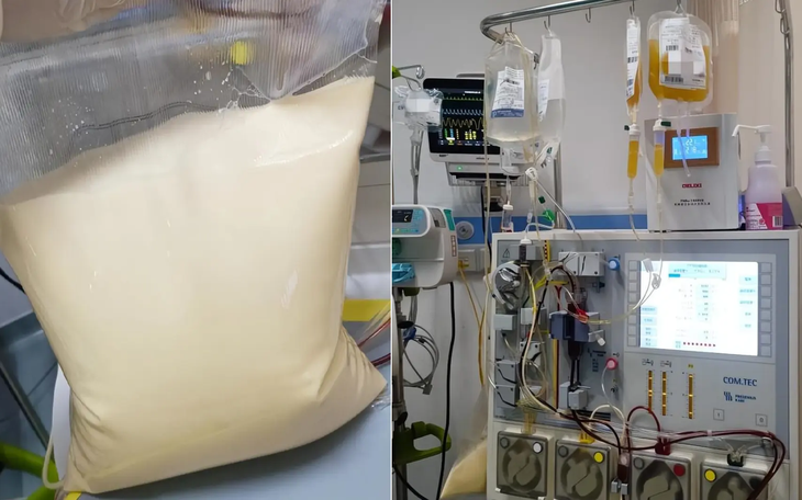Trước tình trạng nguy kịch, bệnh nhân lập tức được chuyển vào Khoa hồi sức tích cực cấp cứu. Các bác sĩ quyết định thực hiện thay huyết tương khẩn cấp. Có thể hình dung đây là cách “rửa máu”: máu được đưa ra ngoài cơ thể qua thiết bị chuyên dụng, tách bỏ phần huyết tương chứa đầy mỡ và độc tố, sau đó truyền lại huyết tương tươi thay thế.