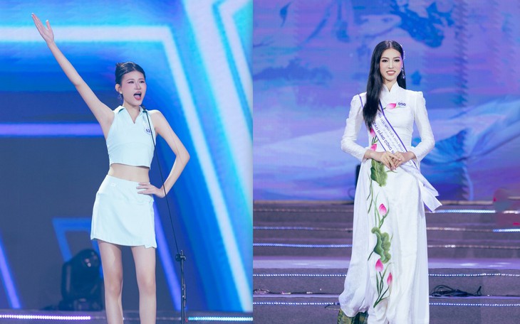 Ngay sau đó, các thí sinh tiếp tục bước vào vòng thi trang phục thể thao. Diện những thiết kế khỏe khoắn, các cô gái không chỉ khoe vẻ ngoài rạng rỡ, trẻ trung mà còn truyền tải thông điệp về sự rèn luyện thể thao, bồi dưỡng tinh thần.