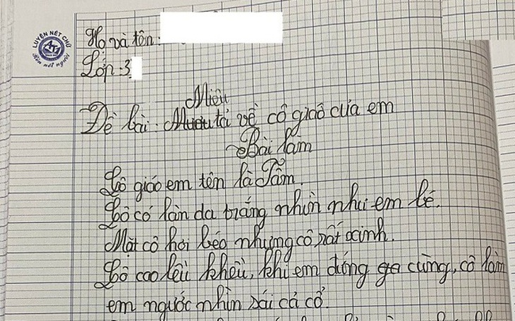 Mới đây, một bài văn tả cô giáo của học sinh lớp 3 được chia sẻ rộng rãi trên mạng xã hội, khiến ai đọc xong cũng phải bật cười. Nguyên văn bài làm như sau: