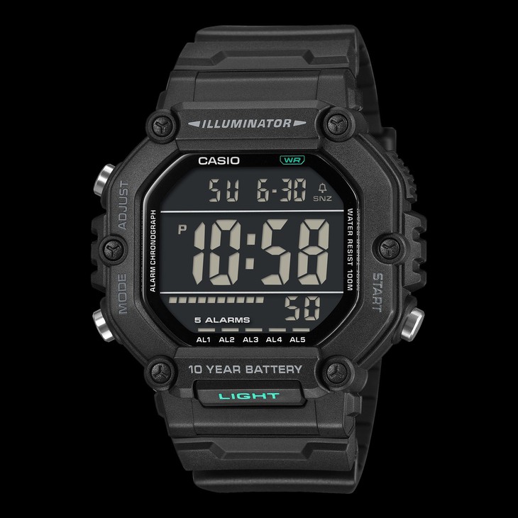 Lịch tự động của đồng hồ hoạt động đến tận năm 2099, hỗ trợ hiển thị 12 giờ và 24 giờ. Độ sai số không quá ±30 giây mỗi tháng, mức chuẩn của đồng hồ thạch anh phổ thông. Đèn nền LED màu hổ phách kết hợp tính năng afterglow giúp màn hình sáng thêm vài giây sau khi nhả nút, thuận tiện trong điều kiện thiếu sáng.