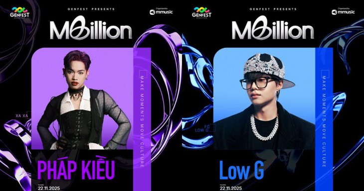 Sau B Ray và JSOL, Low G, Pháp Kiều là hai cái tên tiếp theo góp mặt, đánh dấu cuộc hội tụ đa sắc của rap Việt tại Genfest Presents MBILLION: B Ray hổ báo - Chủ tọa Low G - Xà nữ Pháp Kiều - Mèo hồng JSOL. Cùng hệ thống âm thanh, ánh sáng và visual chuẩn quốc tế, MBILLION hứa hẹn trở thành bữa tiệc nghệ thuật hoành tráng, nơi mọi cá tính và tình yêu âm nhạc được tôn vinh đúng với tinh thần “Vũ trụ Âm nhạc Độc bản” mà GENfest theo đuổi.