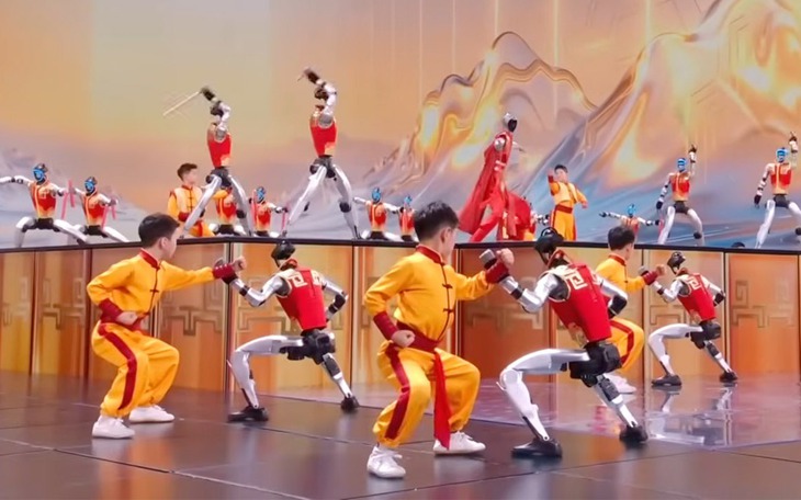 Tâm điểm của đêm hội là màn trình diễn của đội quân robot hình người (humanoid) thuộc thế hệ G1 và H1 đến từ Unitree Robotics. Nếu như trước đây, công chúng chỉ quen mắt với những robot di chuyển rón rén, sợ ngã, thì đêm nay, chúng đã trình diễn Túy Quyền.