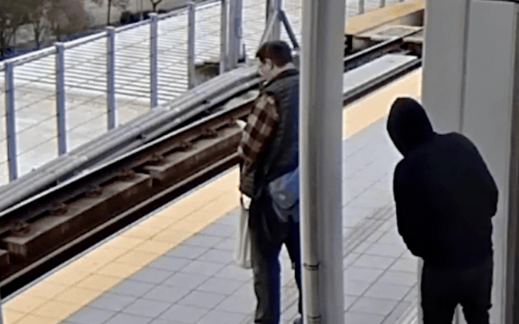 Hành khách đó may mắn đứng vững và tránh được tàu. Sau đó, nghi phạm lại xô anh ta một lần nữa rồi bỏ chạy.