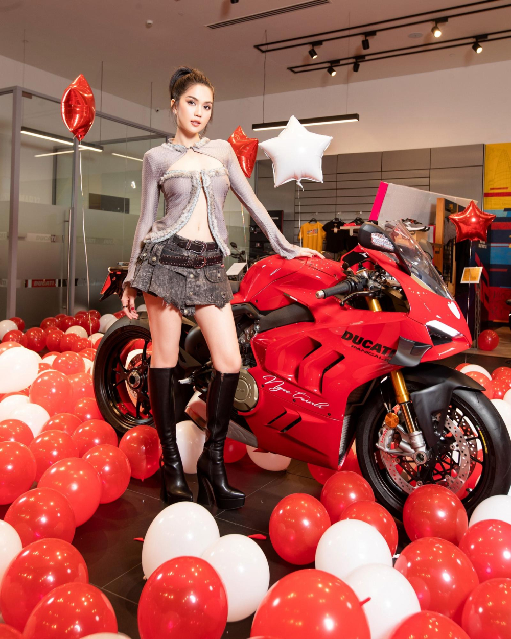 Vào cuối tháng 9 năm 2023, "nữ hoàng nội y" Ngọc Trinh đã gây xôn xao mạng xã hội khi đập hộp phần quà mình tự tặng bản thân, đó là 1 chiếc xe mô tô phân khối lớn Ducati Panigale V4 S 2023 rất đẹp mắt, và tất nhiên, cũng đắt tiền.