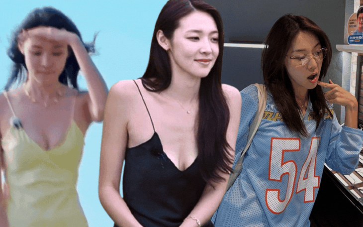 Đáng chú ý, ngay khoảnh khắc đầu xuất hiện tại chương trình, chiếc váy vàng mà Choi Mina Sue diện đã nhanh chóng viral khắp mạng xã hội. Người đẹp lựa chọn một thiết kế slip dress satin màu vàng nhạt mang phom dáng tối giản nhưng lại có sức hút đặc biệt. Phần hai dây mảnh kết hợp cổ chữ V khoét vừa đủ giúp Mina Sue khoe trọn vòng 1 gợi cảm mà vẫn giữ được nét thanh lịch, đồng thời tôn lên làn da sáng và vóc dáng mềm mại. Chất liệu satin óng nhẹ, bắt nắng hoàn hảo khiến tổng thể outfit toát lên vẻ nữ tính, mong manh - đúng chuẩn hình ảnh "nàng thơ mùa hè" giữa khung cảnh thiên nhiên.