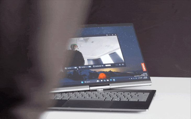 Tính năng "auto twist" được Lenovo định hướng chủ yếu cho thuyết trình và họp trực tuyến. Nhờ camera 10MP kết hợp AI, màn hình có thể xoay và điều chỉnh để khuôn mặt người dùng luôn nằm gọn trong khung hình, kể cả khi đứng lên hoặc di chuyển nhẹ trong phòng. Ngoài ra, hệ thống còn có thể phân tích tư thế ngồi để điều chỉnh góc màn hình, hạn chế việc cúi gập người, hoặc tự động chuyển đổi giữa các chế độ laptop, tablet và trình chiếu.