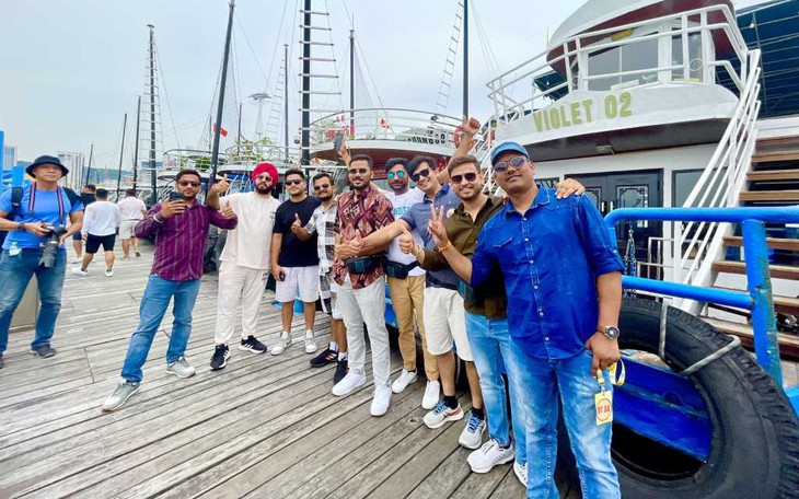 Đoàn khách Ấn Độ tham quan Vịnh Hạ Long.
