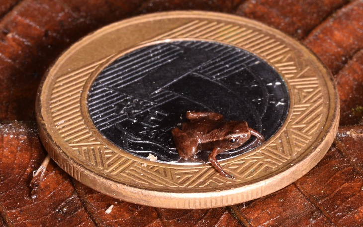 Loài động vật có xương sống nhỏ nhất được biết đến, Brachycephalus pulex, xuất hiện trên một đồng xu. (Nguồn ảnh: Renato Gaiga)