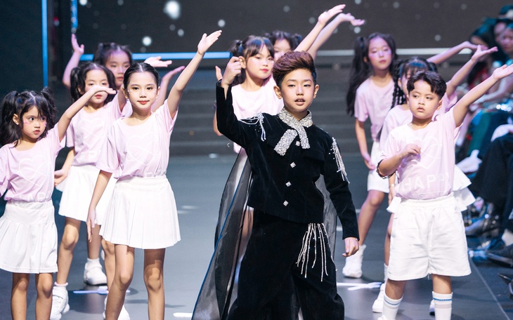 Dù mới 7 tuổi, mẫu nhí đã có bản lĩnh sân khấu đáng nể, khuấy động không khí show diễn.