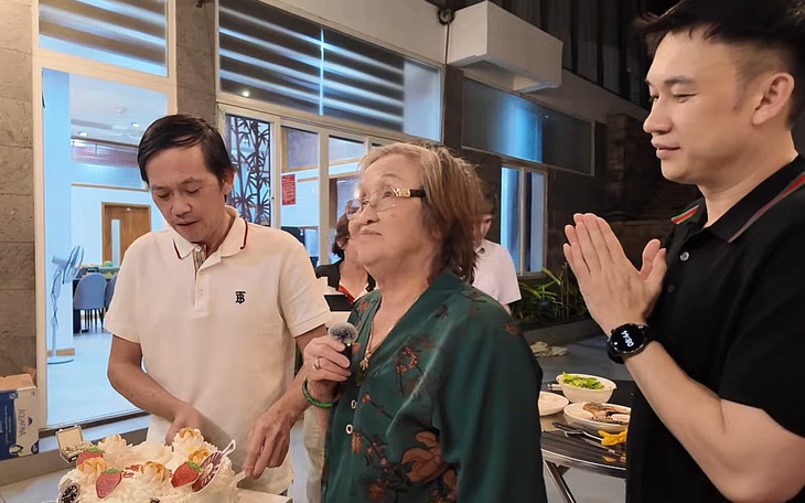 Cắt bánh sinh nhật xong, mẹ Hoài Linh lại chia sẻ thêm: "Sinh nhật Hoài Linh nhiều khi tôi cũng quên vì mấy hôm nay tôi bệnh, chóng mặt đau đầu. Tôi đâu dám nhìn Hoài Linh vì cứ nhìn là Hoài Linh lại bắt tôi đi nằm, sợ tôi mệt. Thành ra tôi sợ Hoài Linh. Mãi tới hôm nay Hoài Linh mới cho tôi ra đây.