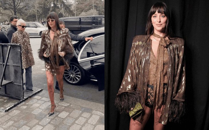 Dakota Johnson luôn được truyền thông và giới mộ điệu săn đón mỗi khi xuất hiện tại các sự kiện lớn nhờ vẻ đẹp tự nhiên, thân hình gợi cảm, khí chất cuốn hút cùng gu thời trang khó đoán. Mới đây, sự xuất hiện của ngôi sao 50 Sắc Thái tại show diễn của Valentino tiếp tục khuấy đảo MXH. Bên cạnh visual cuốn hút quen thuộc, set đồ mà mỹ nhân Hollywood lựa chọn nhanh chóng trở thành chủ đề bàn tán sôi nổi. Dù gây tranh cãi, không thể phủ nhận Dakota Johnson vẫn thành công trong việc khiến mọi ánh nhìn đổ dồn về mình.