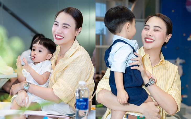 Đàm Thu Trang bên con trai út.