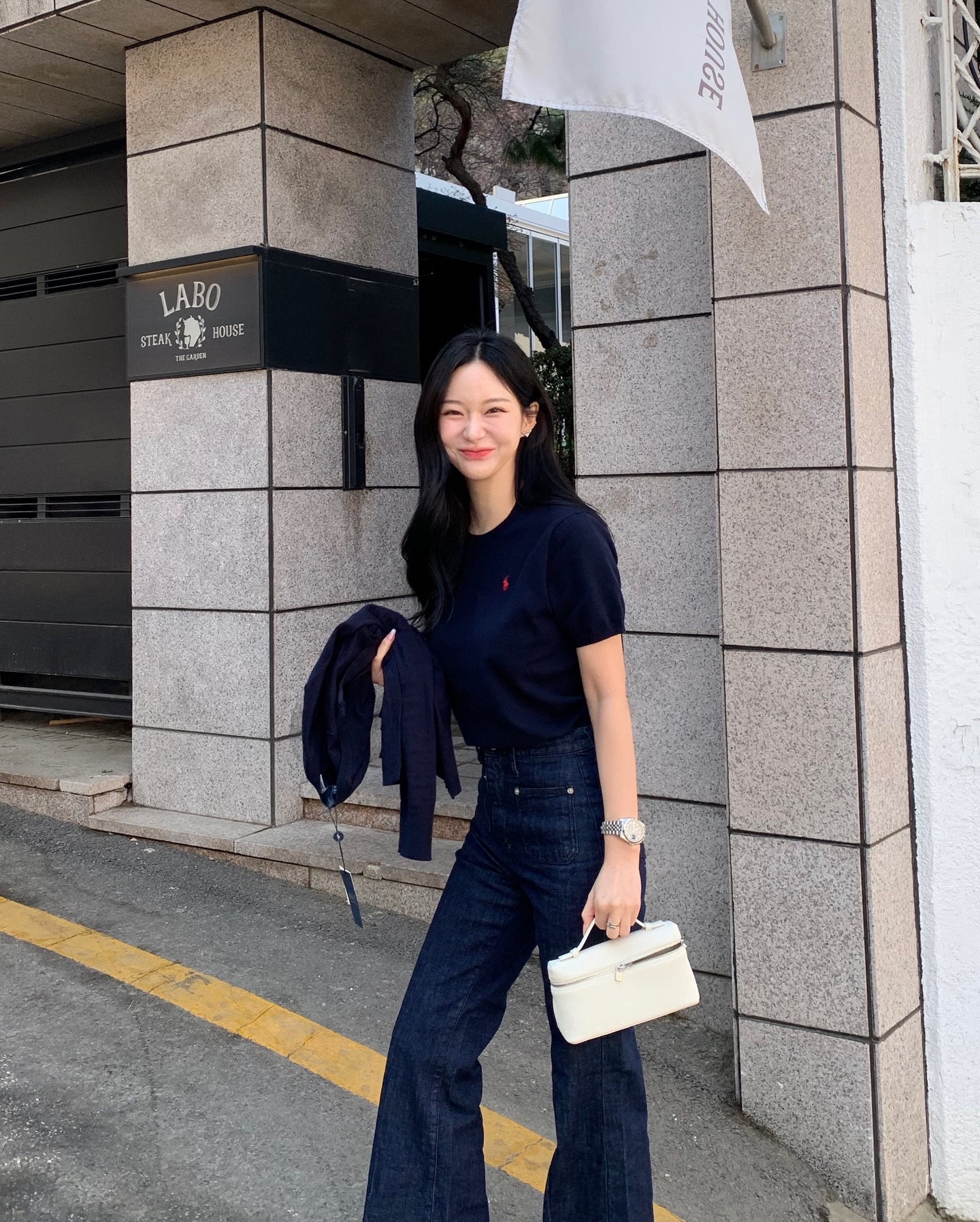 Một mẹo nhỏ là bạn có thể xắn tay áo hoặc mở nhẹ vài cúc trên để tạo điểm nhấn tự nhiên. Thêm một chiếc túi tote hoặc túi da trơn là đủ để hoàn thiện tổng thể mà không cần quá nhiều phụ kiện.