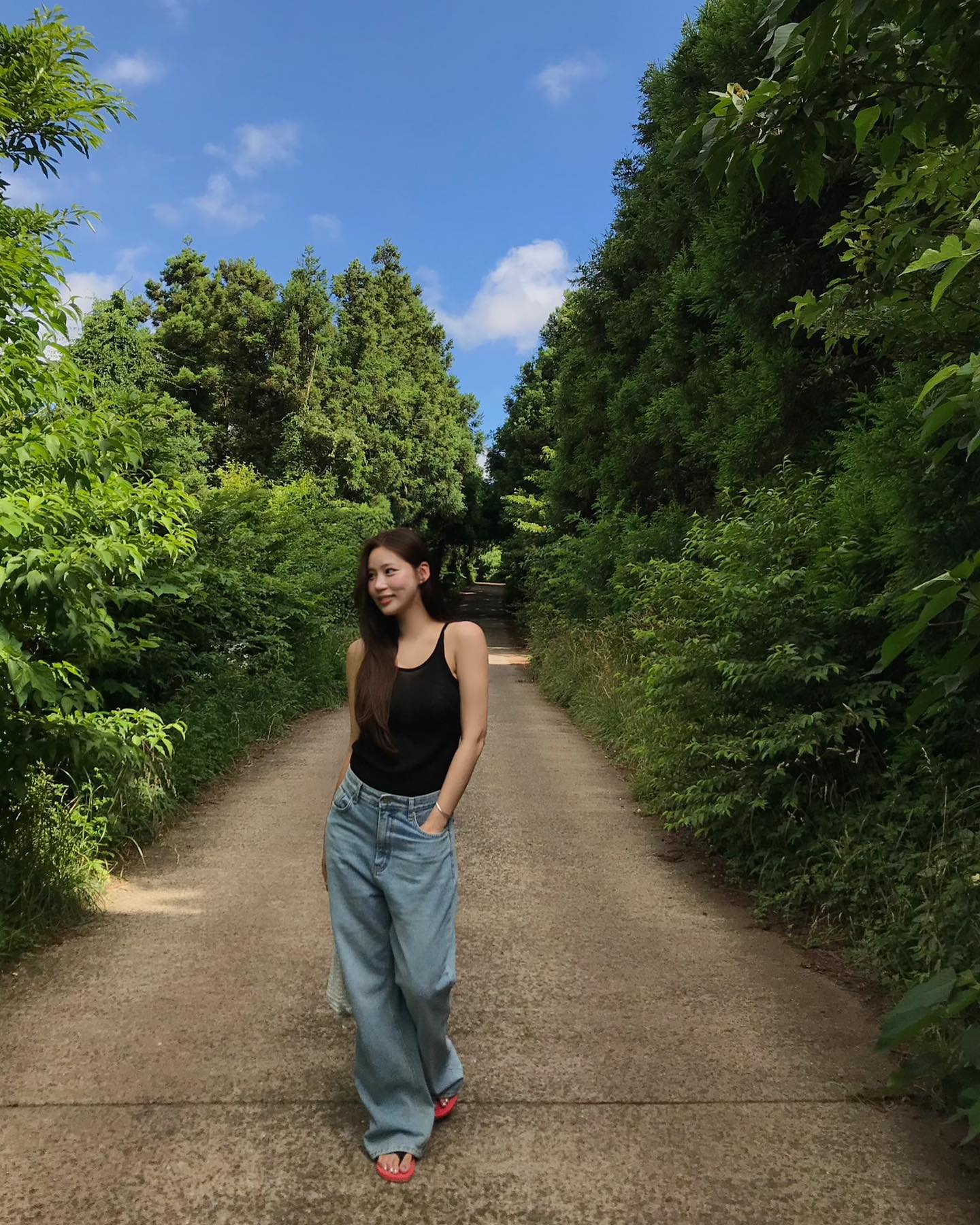 Điểm mấu chốt nằm ở chất liệu và form dáng. Áo hai dây lụa hoặc cotton mịn sẽ giúp tổng thể trông "đắt giá" hơn dù không cần nhiều phụ kiện. Khi kết hợp cùng jeans ống đứng hoặc suông, bạn sẽ có ngay một set đồ đơn giản nhưng rất "có gu". Nếu muốn tăng thêm phần tinh tế, hãy chọn thêm một đôi sandal quai mảnh hoặc giày mule.
