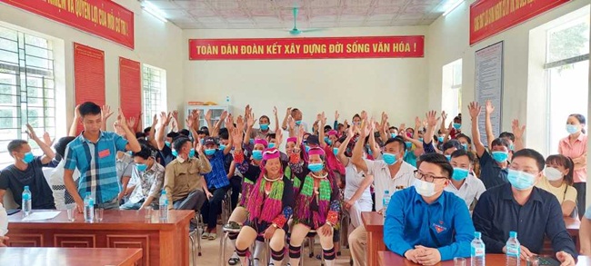 Cử tri thôn Pẹc Nả, xã Bắc Sơn, TP Móng Cái, biểu quyết đồng ý bầu trưởng thôn.