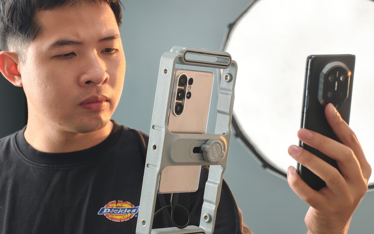 Trước đây, Triều từng sử dụng DJI Pocket 3 khá thường xuyên. Nhưng thời gian gần đây, thiết bị này xuất hiện ít hơn trong balo của anh. Một phần vì việc mang thêm một chiếc máy quay riêng — vốn khá mỏng manh — không phải lúc nào cũng tiện. Quan trọng hơn, Pocket 3 không có khả năng zoom xa và không linh hoạt trong các góc quay sản phẩm như hệ thống camera đa tiêu cự trên Galaxy S25 Ultra. Với người thường xuyên quay sản phẩm, sự linh hoạt đó mang tính thực tế hơn.