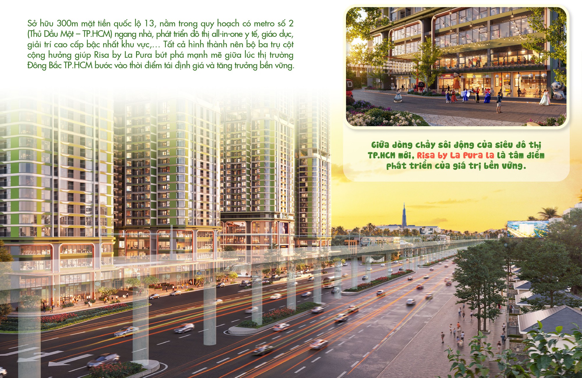 Theo quy hoạch mới, khu vực dọc metro được áp dụng cơ chế TOD (Transit Oriented Development), phát triển đô thị theo định hướng giao thông công cộng. Cho phép tăng hệ số sử dụng đất 1,5 lần, khuyến khích mô hình tổ hợp đa chức năng. Dưới góc nhìn quy hoạch đô thị, từ vị trí, tuyến đường và hạ tầng mà Risa by La Pura đang thừa hưởng rất giống với quy hoạch của Xa Lộ Hà Nội – Metro số 1 (Bến Thành - Suối Tiên).