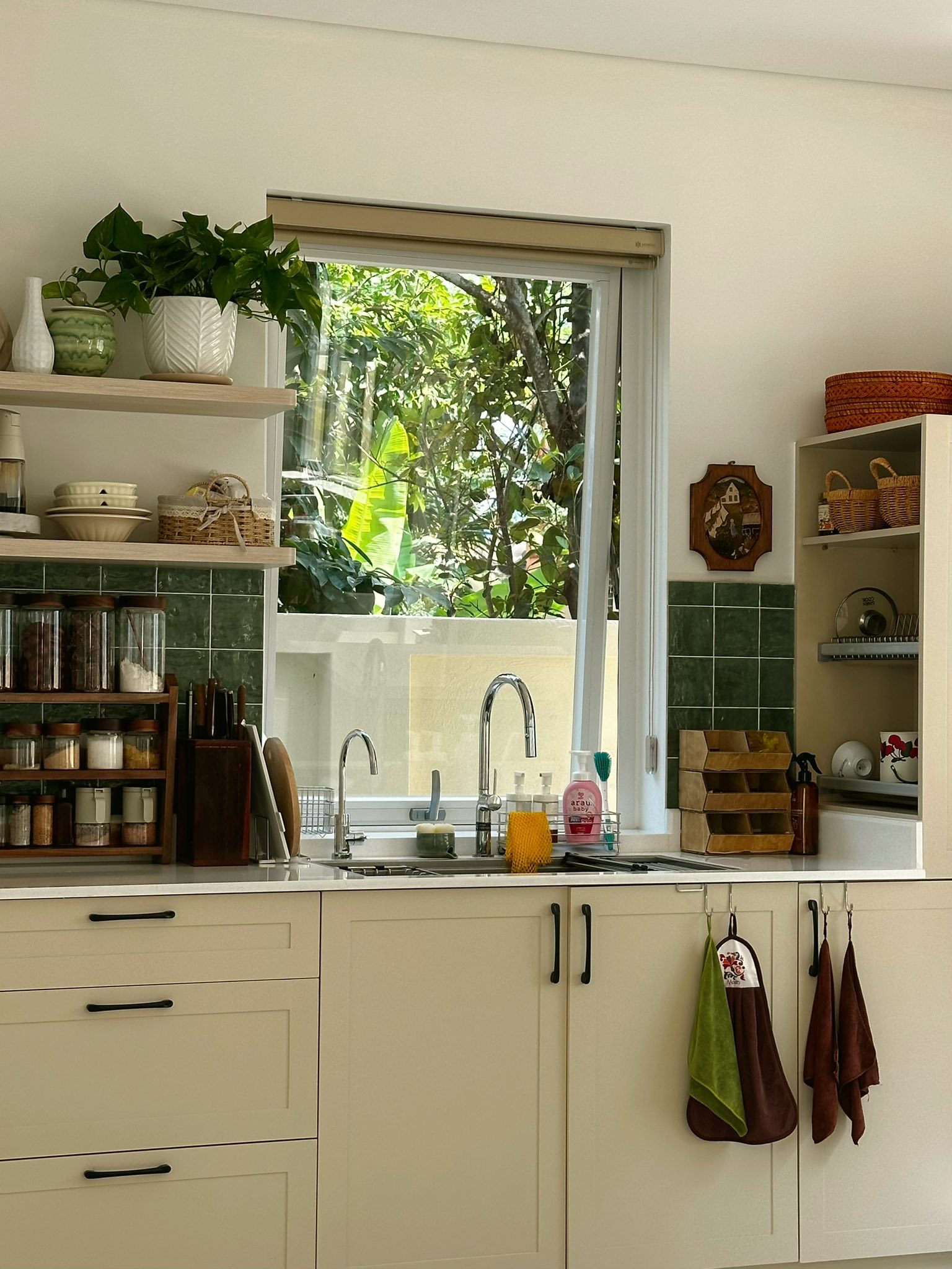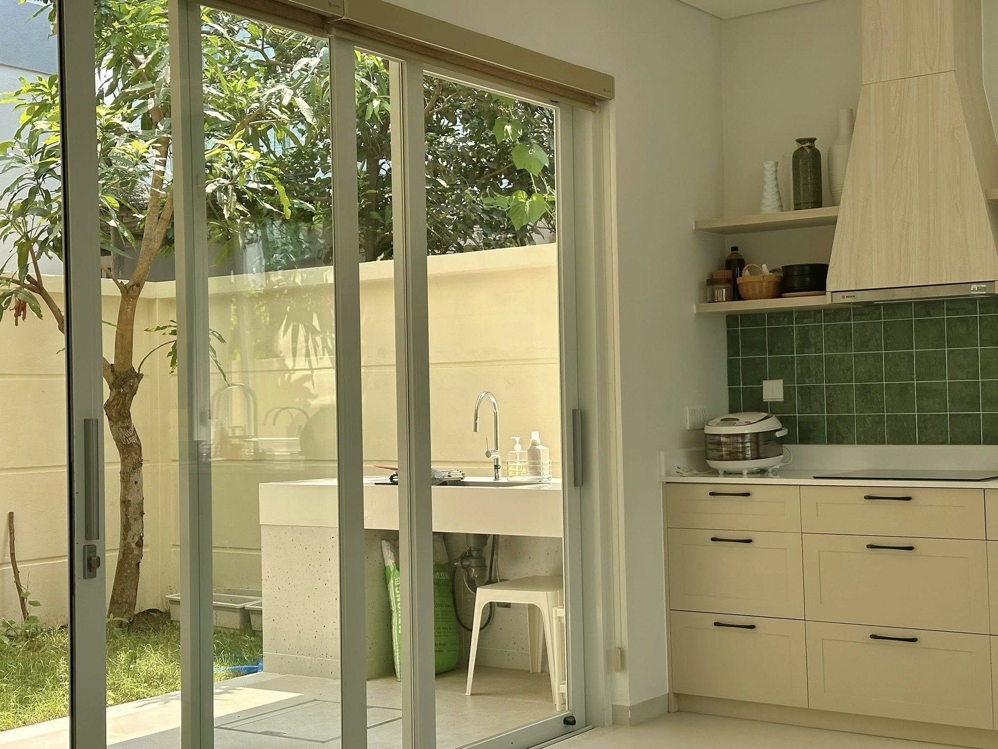 "Ngồi ở sofa, mình có thể nhìn thấy các con chơi ngoài sân, giống như bức tranh sống động" - Bảo Nhi chia sẻ.