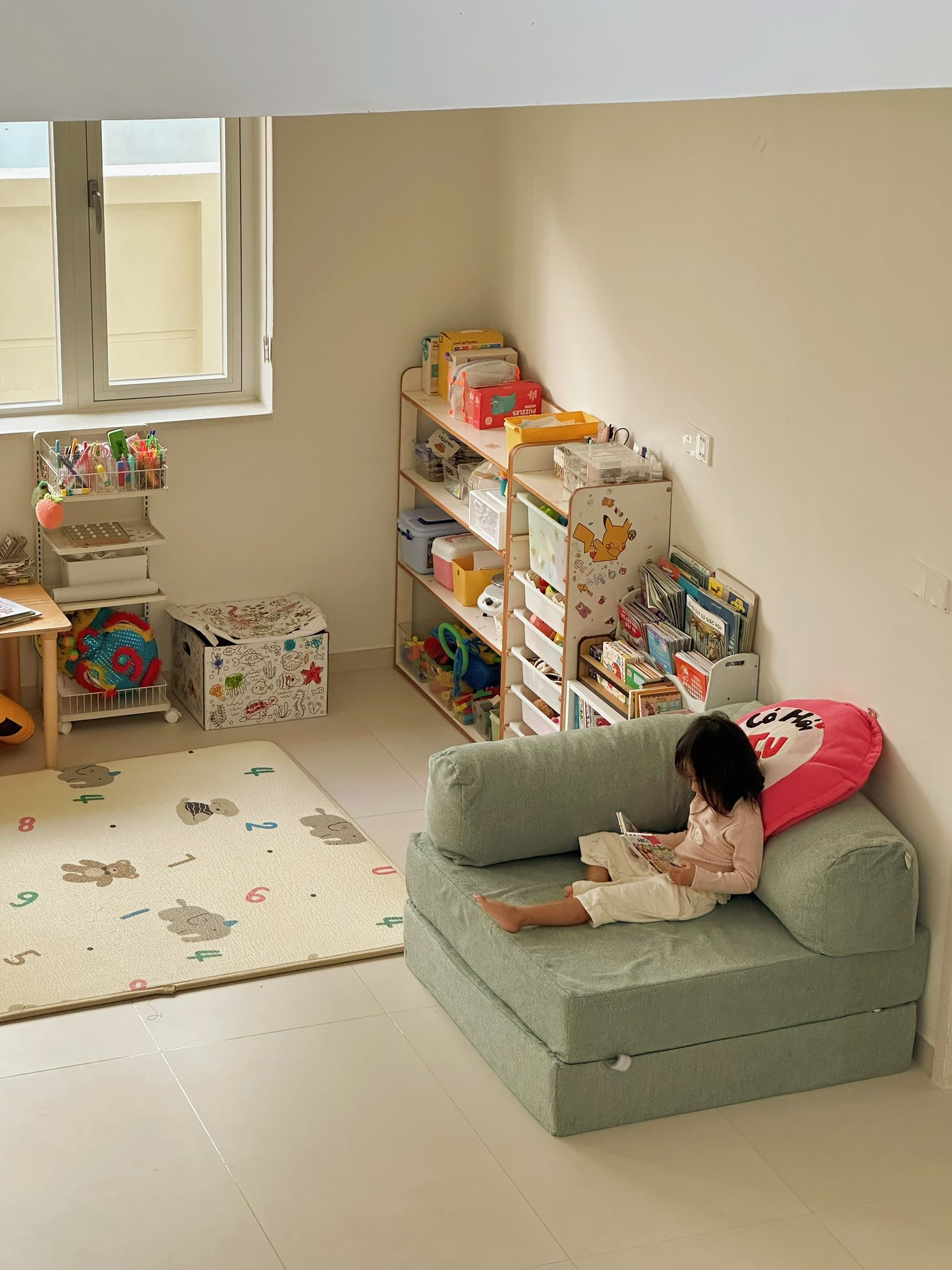 Nhờ vậy, đồ chơi không bị mang đi khắp nhà, việc dọn dẹp trở nên nhanh chóng, và không gian luôn giữ được sự nhẹ nhàng.