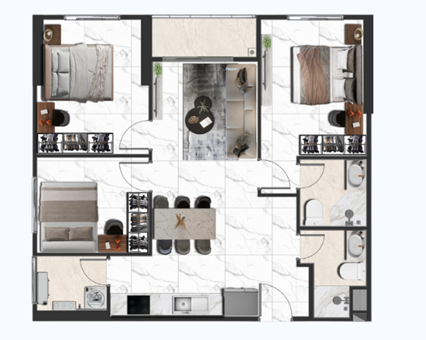 Layout căn hộ 2 phòng ngủ