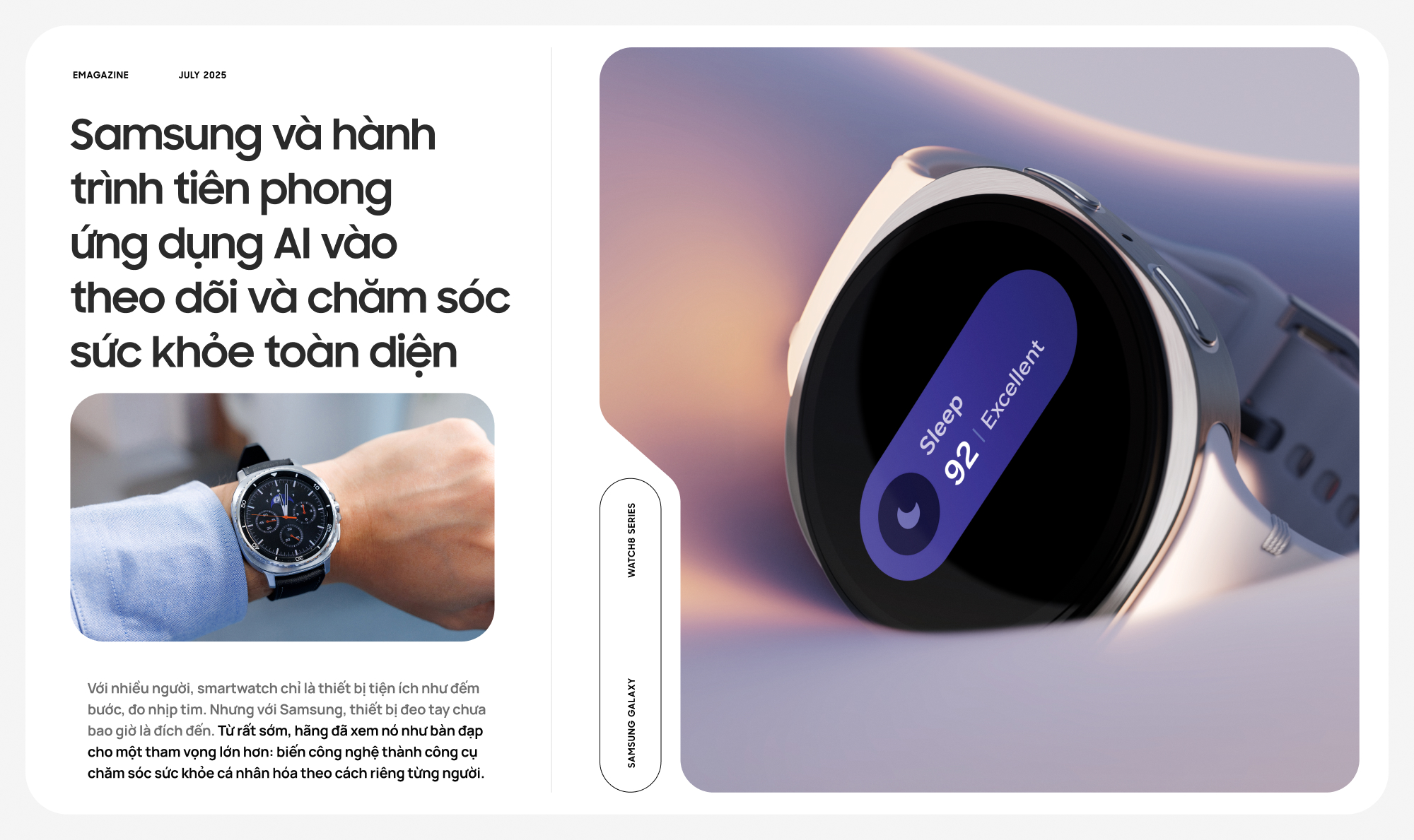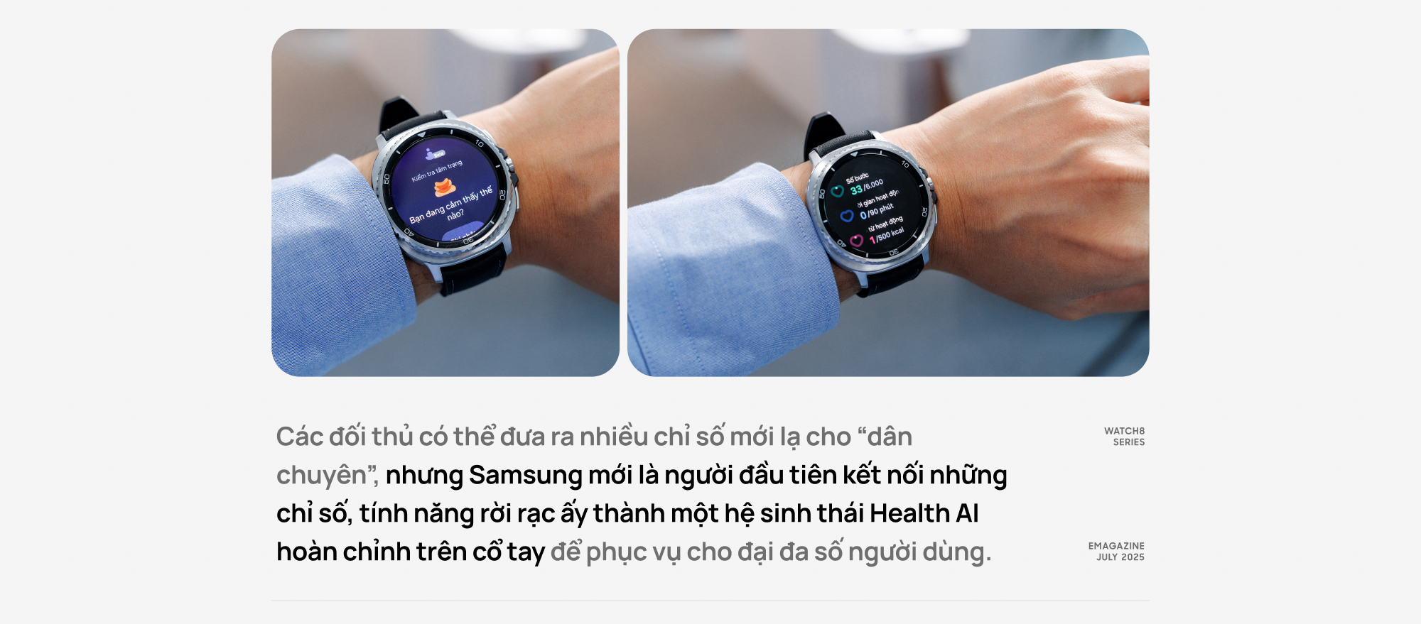 Trong nhiều năm, ngành thiết bị đeo thông minh đã tiến về phía trước theo từng milimet: pin lâu hơn, màn hình sáng hơn, phần mềm mượt hơn. Nhưng Galaxy Watch8 Series chọn một hướng đi khác: Sâu hơn, không chỉ "smart" mà còn thấu hiểu. Nó là kết quả của hơn một thập kỷ nghiên cứu, hợp tác y tế, và đầu tư chiến lược để đưa AI thực sự hữu ích vào đời sống thường ngày, không ồn ào, không hào nhoáng, nhưng thuyết phục.