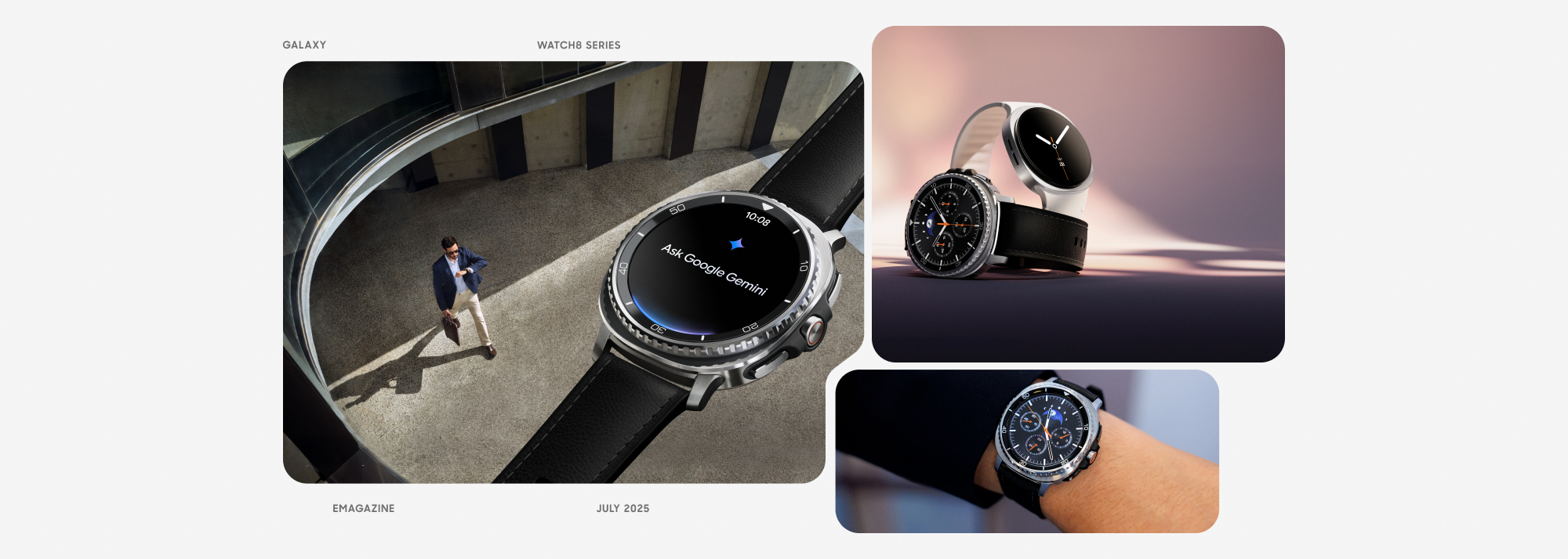 Galaxy Watch8 là đại diện cho thế hệ thiết bị đeo thông minh mới: siêu mỏng nhẹ với thiết kế mặt trong đặc trung cùng viền đệm "cushion shape", liền lạc, trẻ trung và gần như biến mất trên cổ tay khi đeo cả ngày. Với thiết kế "squircle" mềm mại, viền động ôm sát cổ tay, Watch8 sinh ra để phục vụ lối sống năng động, nơi người dùng cần một thiết bị đủ thông minh để theo dõi sức khỏe liên tục, nhưng đủ tinh tế để không gây vướng víu trong bất kỳ hoạt động nào.
