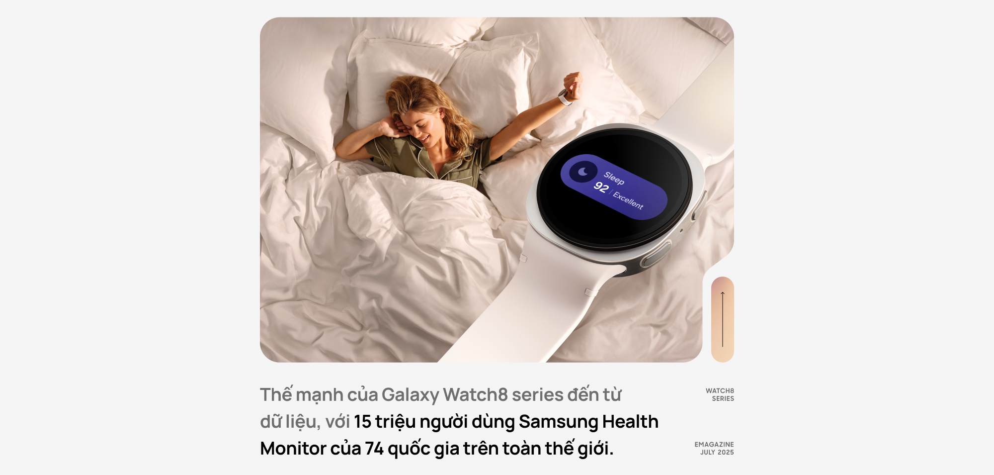 Để làm được điều đó, Samsung không đơn độc. Họ đã xây dựng một hệ sinh thái Health AI ba trụ cột, tập trung vào những lĩnh vực có ảnh hưởng lâu dài tới sức khỏe con người: giấc ngủ, tim mạch và quá trình lão hóa. Với giấc ngủ, Watch8 series không chỉ ghi lại thời lượng và chu kỳ mà còn phân tích môi trường xung quanh, bao gồm ánh sáng, nhiệt độ, độ ồn, để từ đó gợi ý giờ đi ngủ phù hợp theo "áp lực giấc ngủ" từng ngày. Với tim mạch, Watch8 series là thiết bị đo được áp lực lên hệ thống mạch máu trong khi ngủ, một dạng gánh nặng tiềm ẩn chưa từng được theo dõi liên tục trước đây. Và với quá trình lão hóa, cảm biến BioActive 3 mới cho phép đo chỉ số carotenoid dưới da. Đây là yếu tố phản ánh khả năng chống oxy hóa, từ đó giúp người dùng biết được tốc độ lão hóa của chính mình đang ở mức nào.